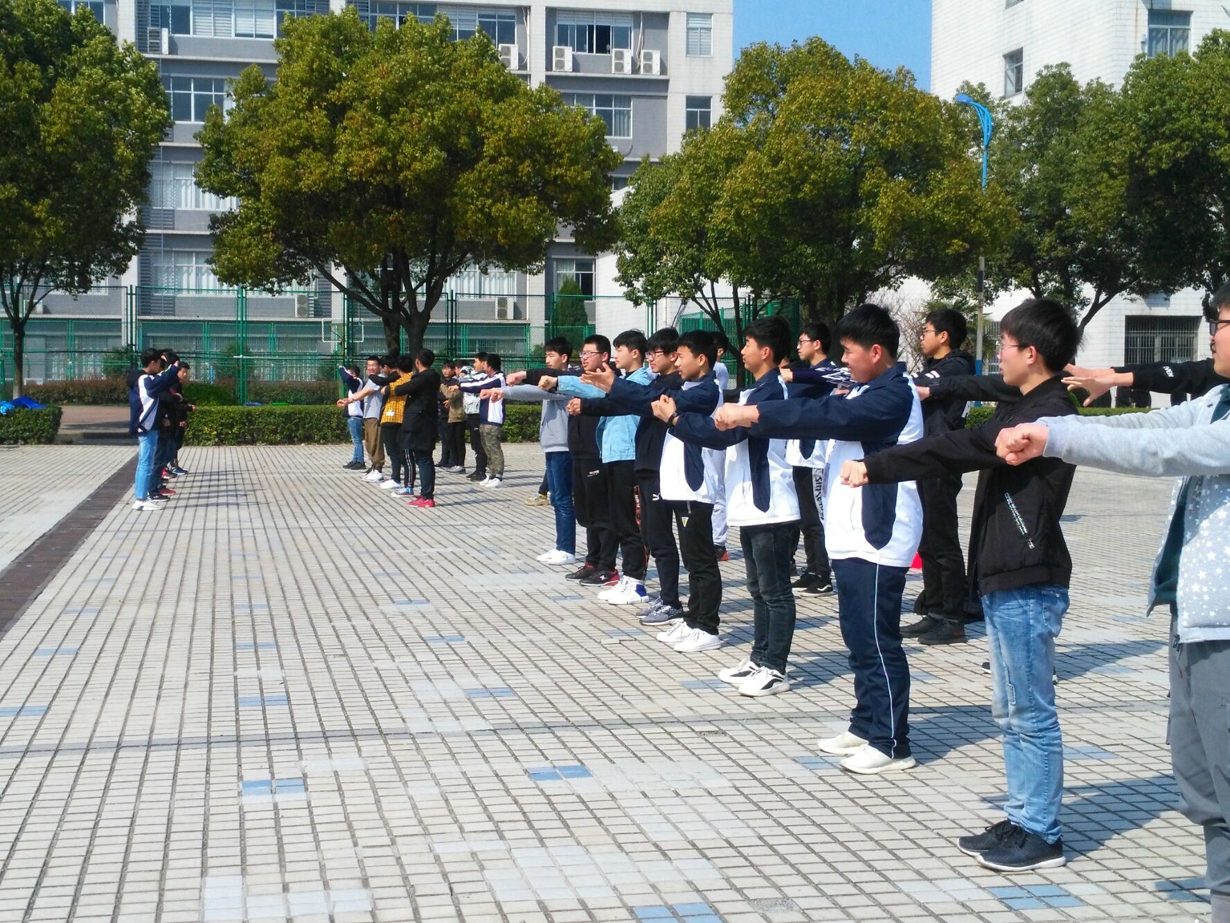 在各班班主任和学生的精心准备下,各位同学都积极的参与到其中,从一开始的体能测试,到每一次努力排练,同学们都认真的琢磨,勤奋的打出每一个动作,一次又一次的挥洒勤劳的汗水,不畏困难,不畏酷热的阳光,敢于挑战,敢于学习。在潘建平老师和其他小老师的动作指导下,同学们纠正了很多不协调的动作,这使得同学们的动作逐渐熟练,动作更显整齐美观。