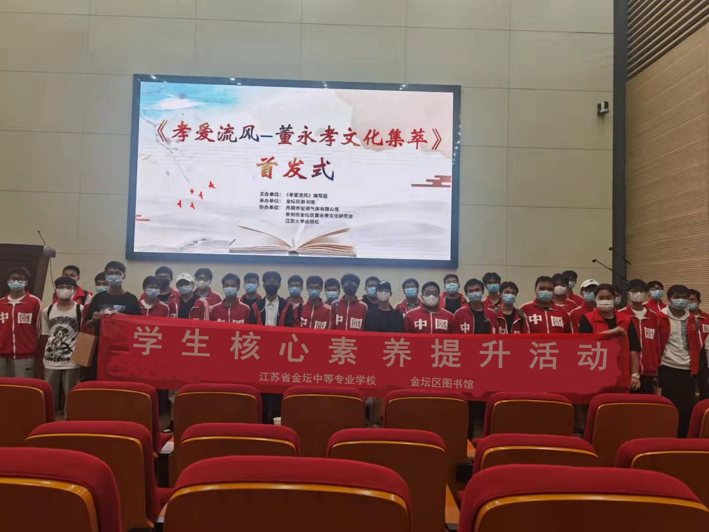 2021年10月14日,农历九月初九,是中国传统节日重阳节。当天,我校师生在共建核心素养基地——金坛区图书馆参加《孝爱流风:董永孝文化集萃》出版首发式暨讲座活动,聆听了国家级非物质文化遗产“金坛董永传说”,上了一堂生动的“孝”文化课,增进了青年学生对尊老、敬老、爱老、助老的认知。