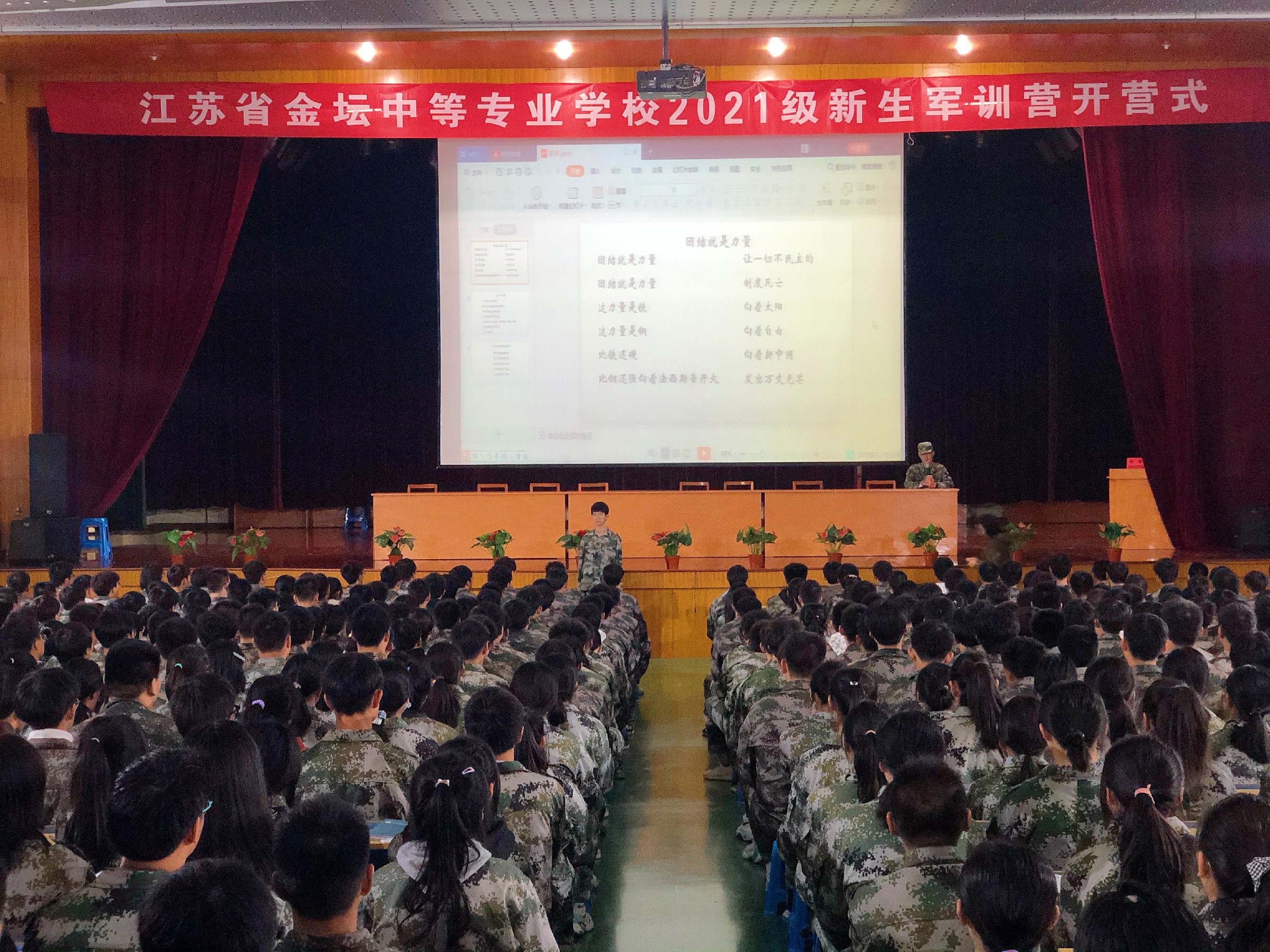 “团结就是力量,这力量是铁,这力量是钢”,军歌往往是军人核心价值观的凝练表达,练唱军歌、高颂“番号”能统一思想,鼓舞士气。晚间,在基地大礼堂,教官们组织学员有序开展了“颂军歌·鼓士气”的军歌教学活动。当威武雄壮、蓬勃激昂的军歌节奏响起,教官们铿锵有力地进行领唱,底下学员们精神饱满、歌声嘹亮。军歌赋予学员勇气,军歌号召学员团结,军歌催促学员奋进,军歌把未来七日的训练热情恣意唱响!